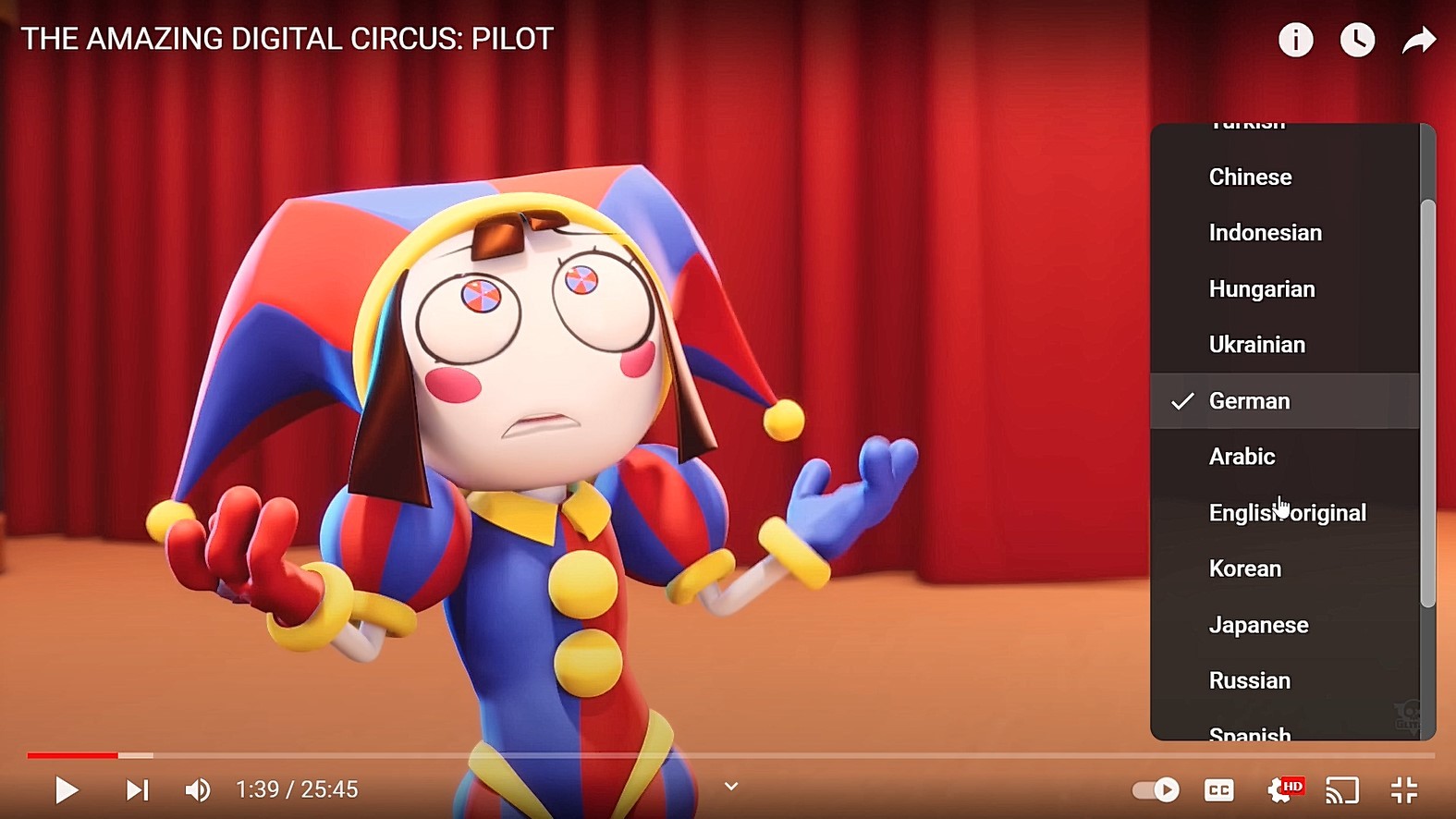 The audio tracks can also be switched by viewers within the video by clicking on Settings (the gear icon), selecting Audio Tracks, and choosing the dub audio track they’d like to listen to.